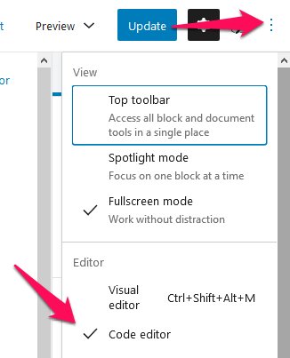Switch to code view by clicking on the three dots in the upper right corner of the edit interface.