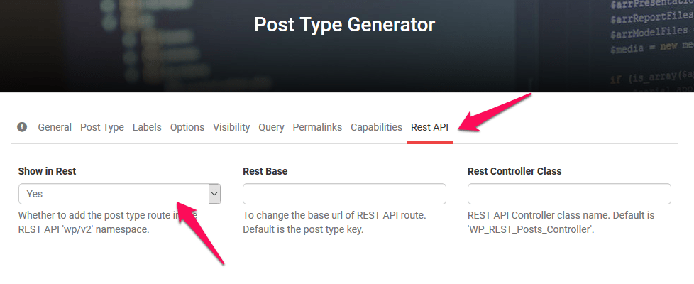 If you use GenerateWP you may have noticed that there is now a “rest API” tab in the custom post type and custom taxonomy generators. If you don’t uses GenerateWP yet go ahead and register for the site as you can still use the generators for free.